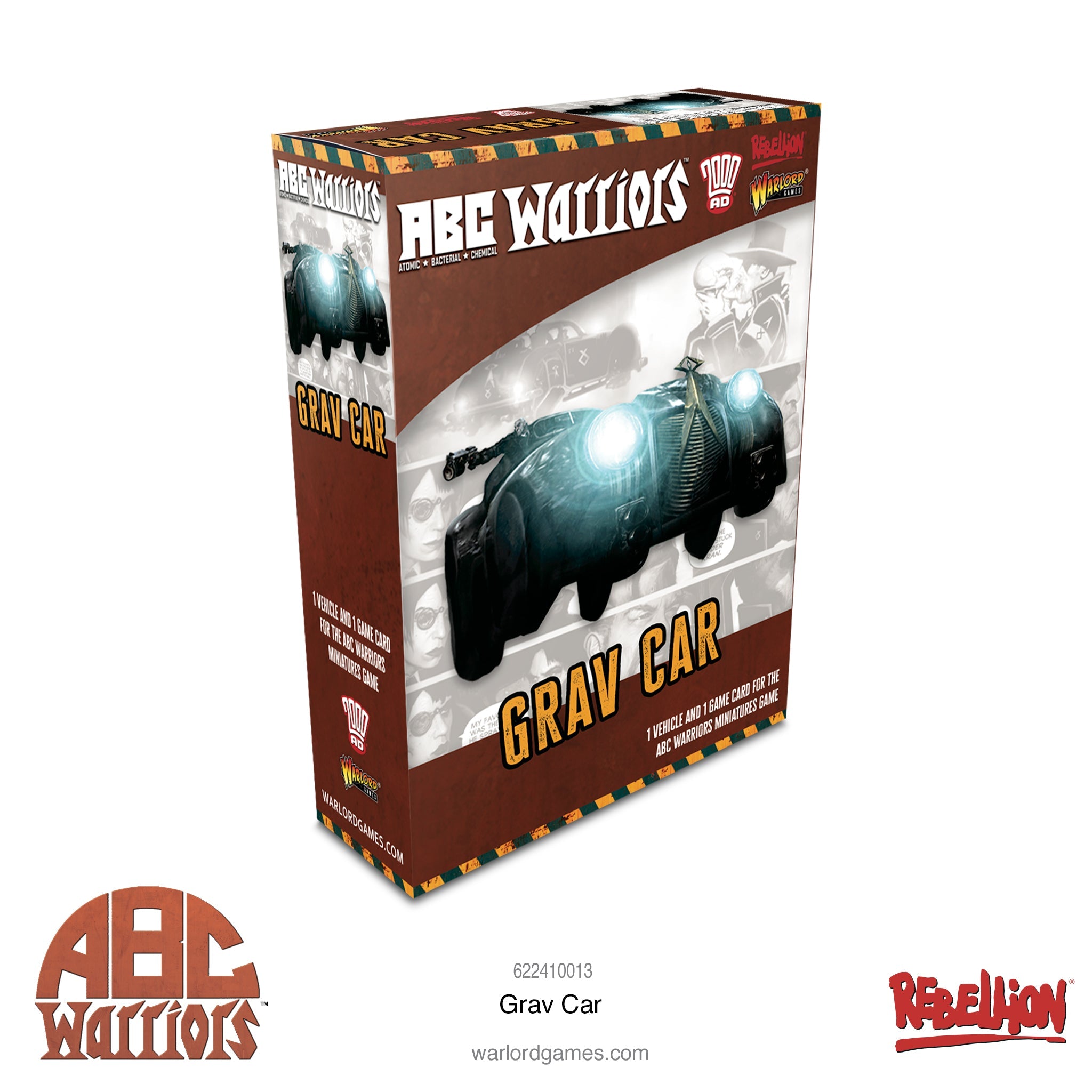 Contains one resin ABC Warriors vehicle with plastic flying stand and game card.