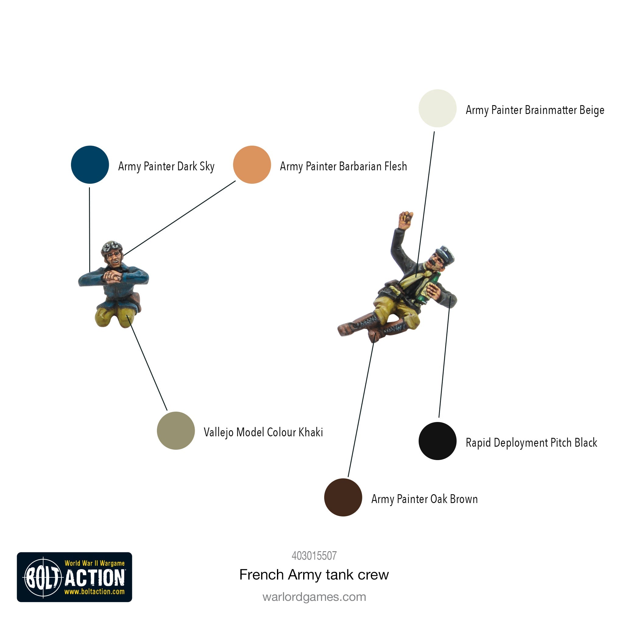 With four different partial figures to mount in the hatches of your French vehicles, plus three fantastic dismounted figures representing either bailed-out crew or tank commanders performing forward reconnaissance, this set is the perfect way to add character to your Bolt Action French armour!
