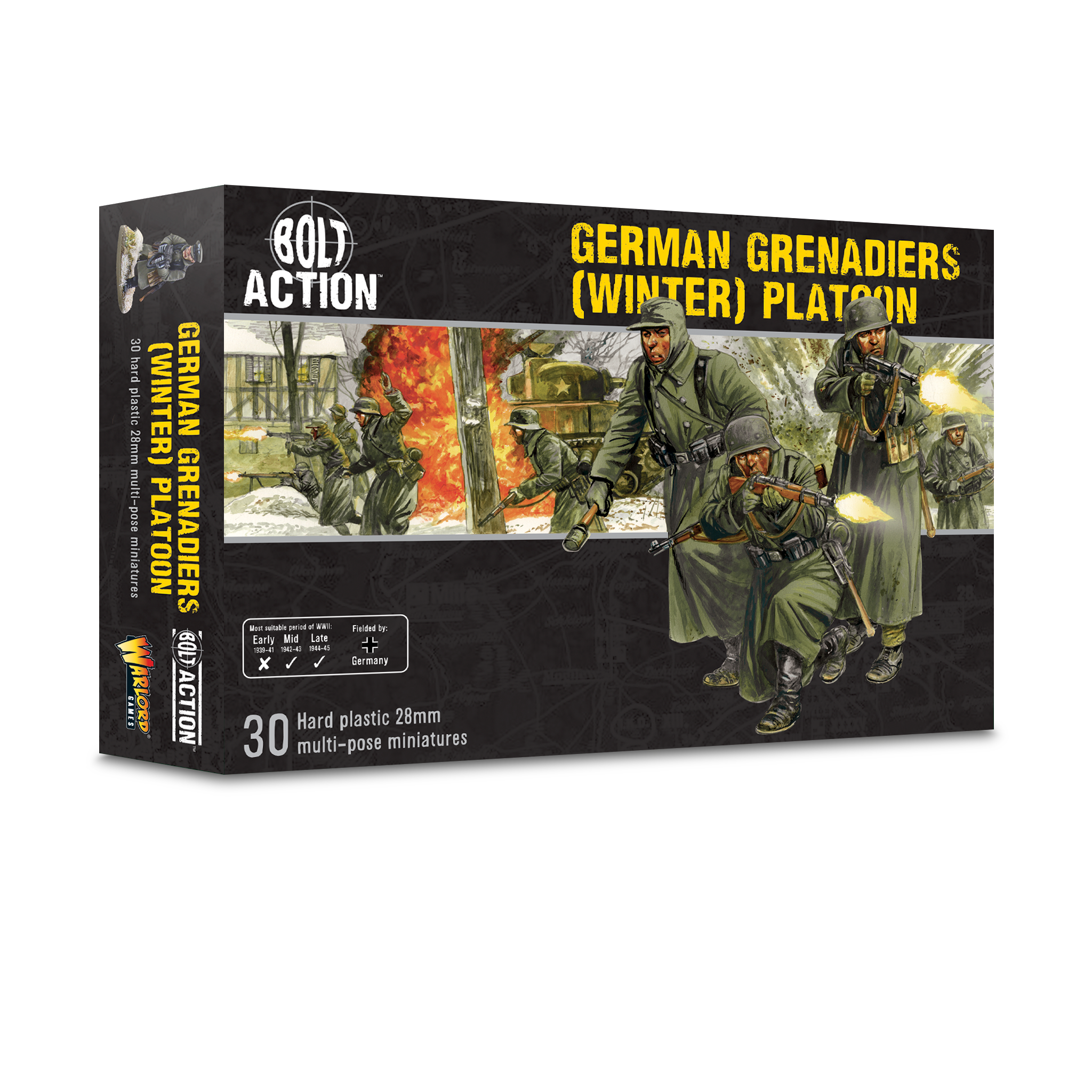 These highly detailed plastic figures are ideal to represent German Infantry (Winter) – be they Heer or Waffen-SS – facing the enemy in cold weather or in the very depths of the bitter winter snows. Weapons, equipment and headgear options allow you to build the figures for all periods of the war from the Blitzkrieg operations of 1939 and 1940 right through to the death throes of the Third Reich in Berlin during 1945.