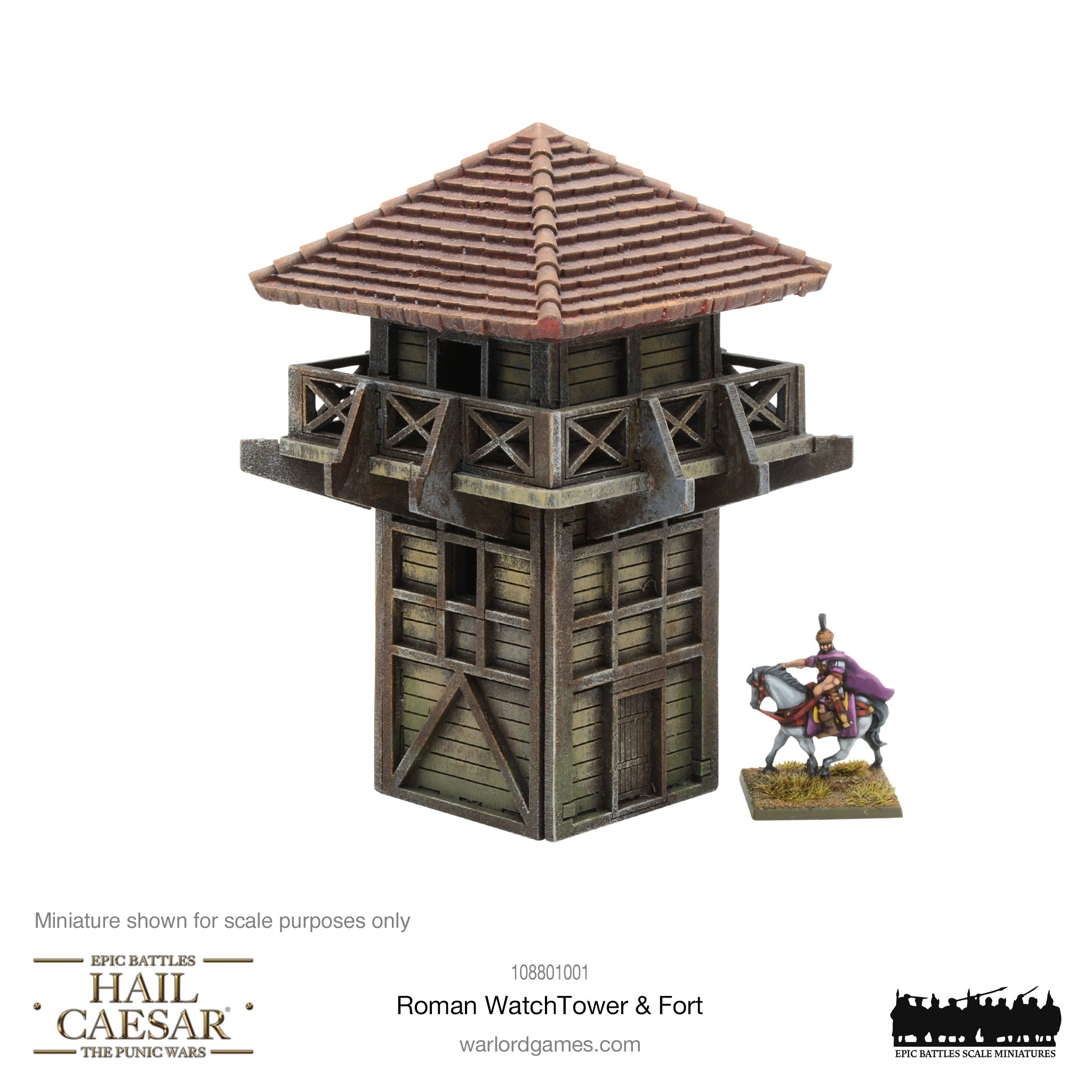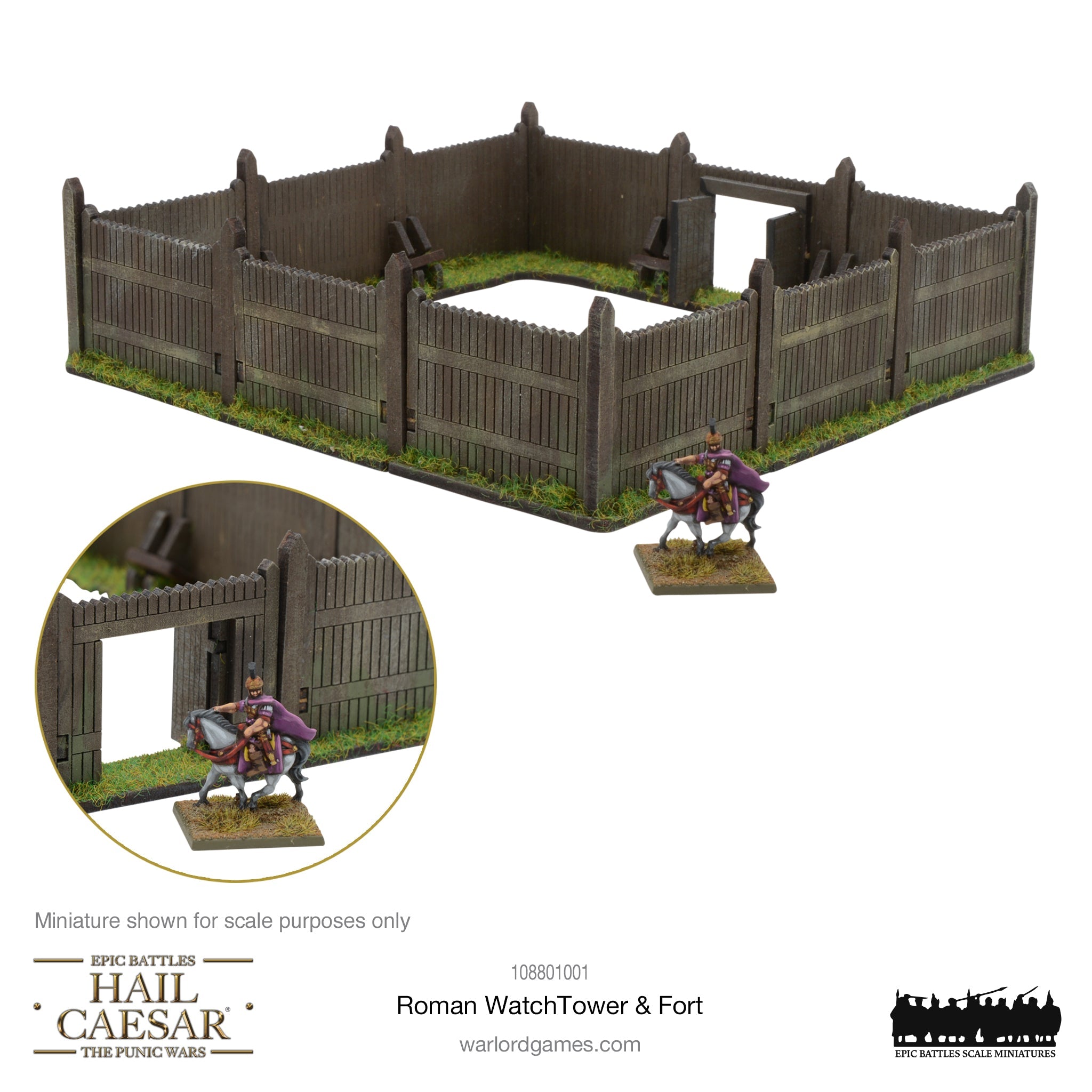 Pack contains one MDF Roman Watchtower and palisade fencing. The Watchtower roof is resin.
