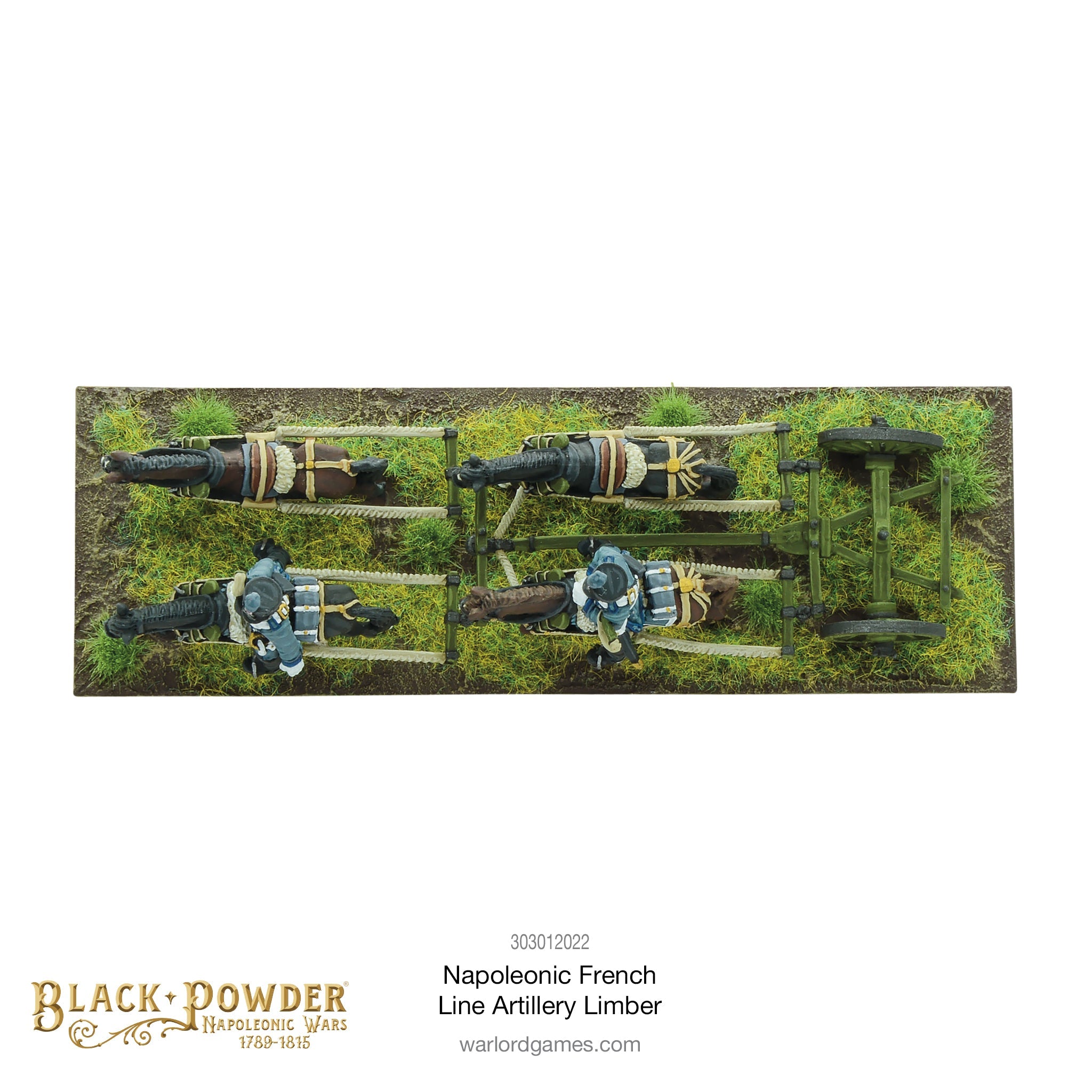Contains one four-horse limber with French line artillery riders, in Warlord Resin PlusTM.