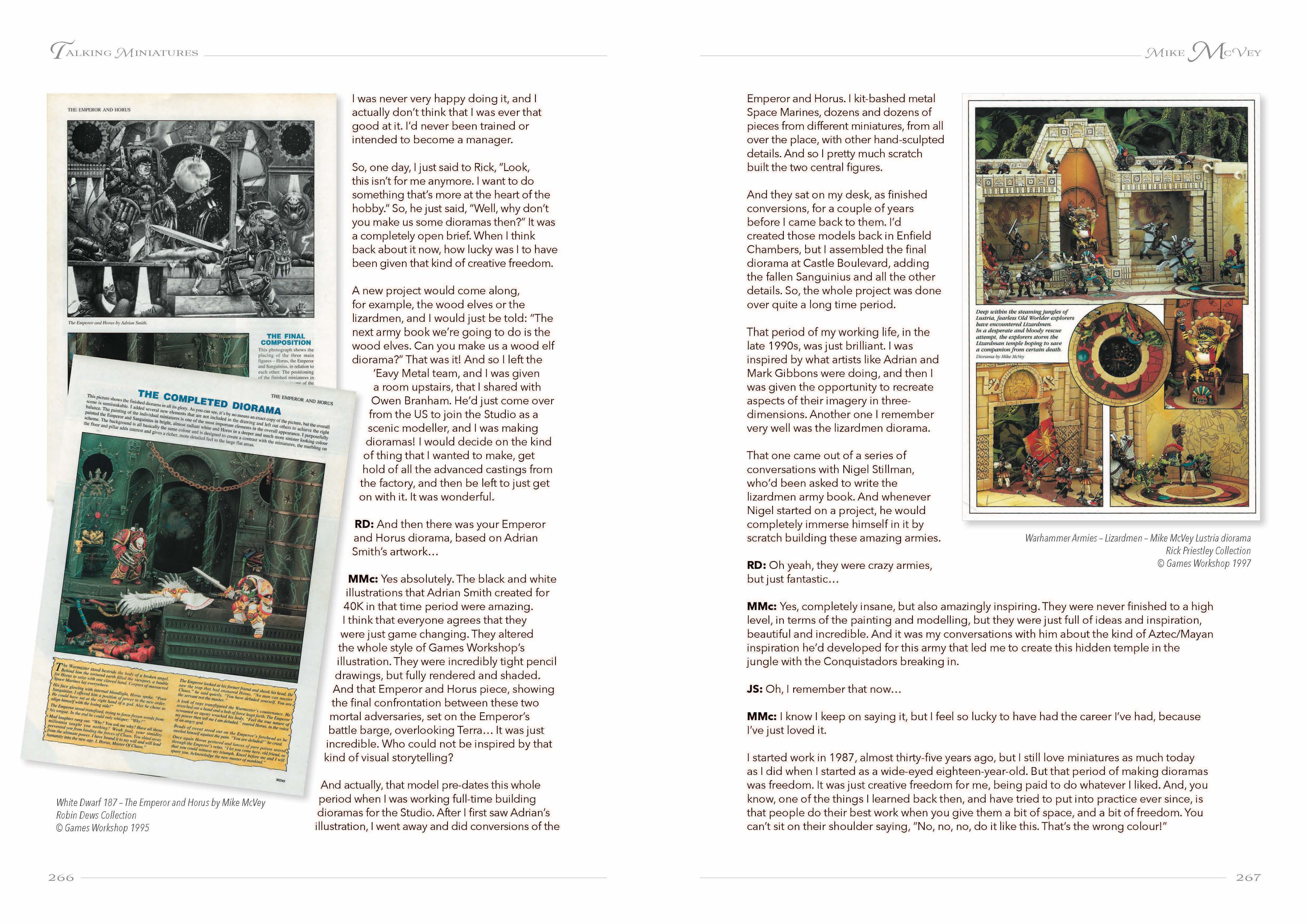 More a collection of conversations than a series of interviews, Talking Miniatures, allows the participants to tell us in their own words, exactly what it was like in those very early years. How did that first edition of Warhammer Fantasy Battle come to be written? Who was behind the incredible look and feel of the original Warhammer 40,000 – Rogue Trader? How did the iconic shape of the original RTB01 Space Marines develop, and how did Mike McVey create and then master the mid- 90s GW painting style? All these questions, and hundreds more, are answered in this book in the words, memories and recollections of the people who were actually there and doing these things!