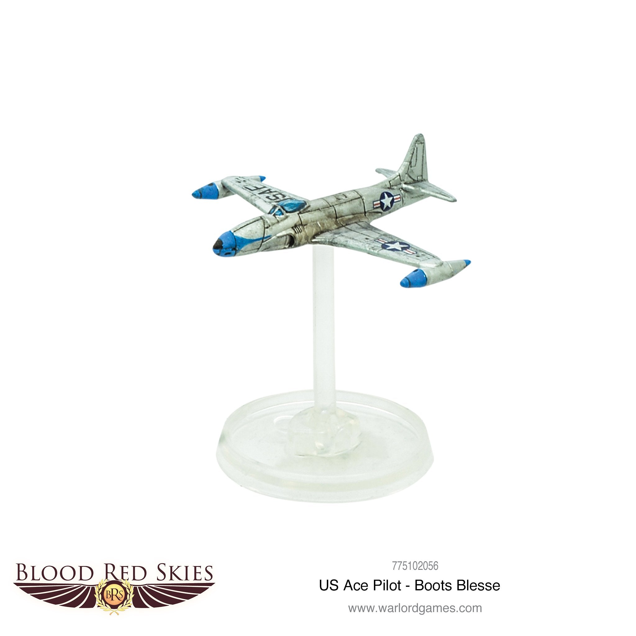 During the second tour in F-86s, as part of the 334th Fighter-Interceptor squadron he was officially credited with shooting down nine MiG-15s and one La-9, as well as (unofficially) an additional probable kill, and three more enemy aircraft damaged. At the time of his return to the United States in October 1952, he was America's leading jet ace. Contains 1 Resin Lockheed F-80C Shooting Star Aircraft and game cards.